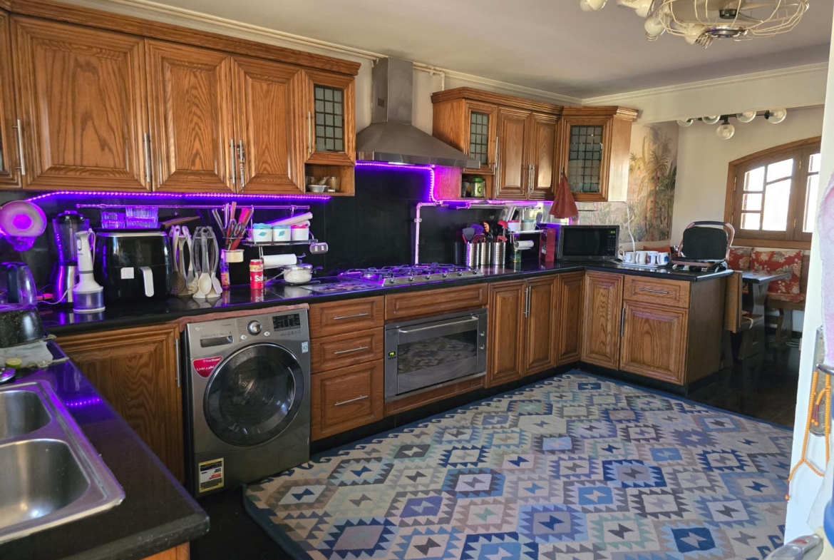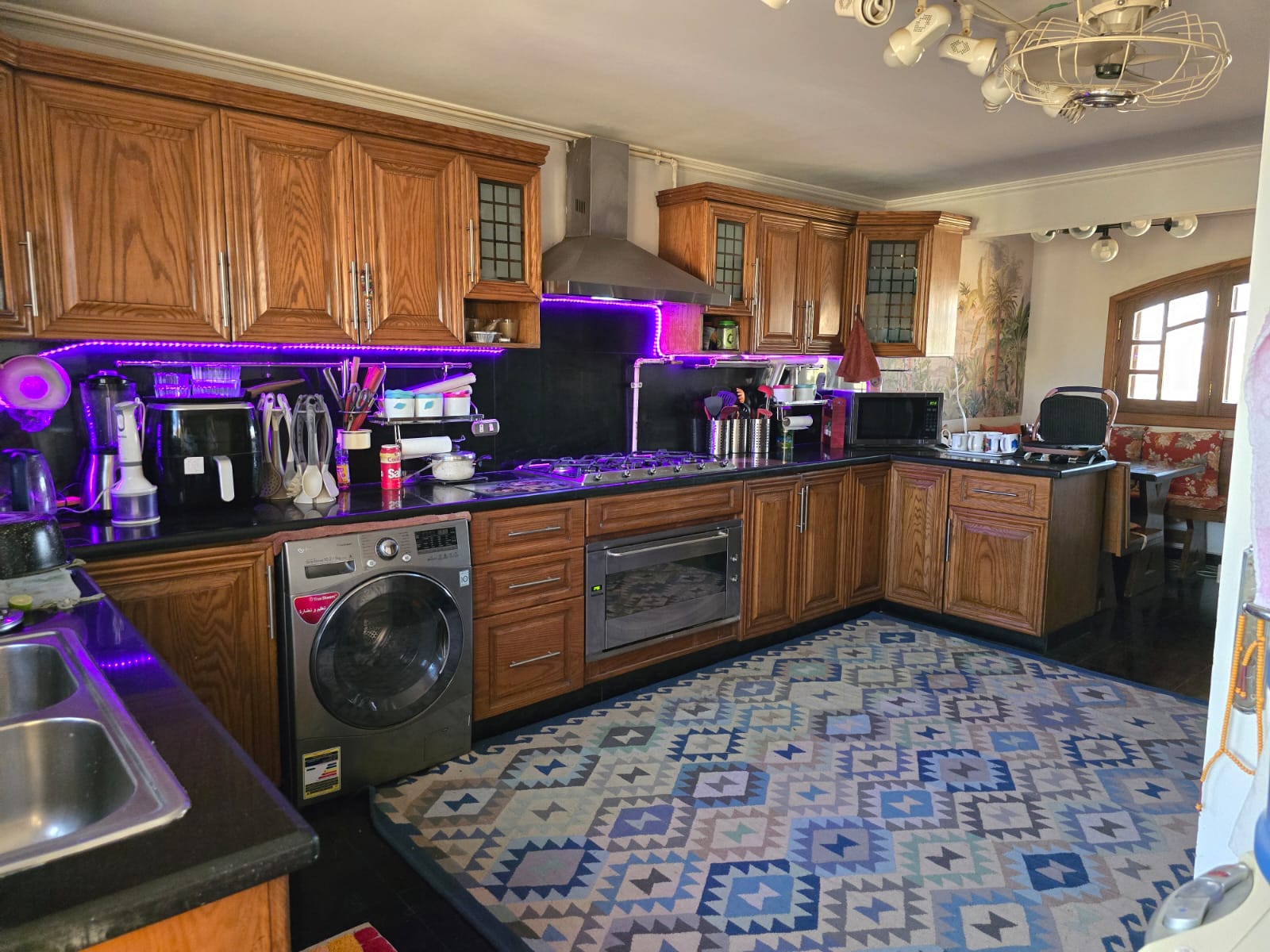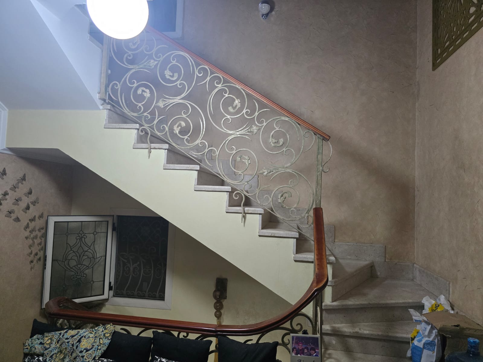 المطبخ رخام اسود ابلادور وشبابيك خشب ارو زجاج سلم البيت زجاج معشق .
