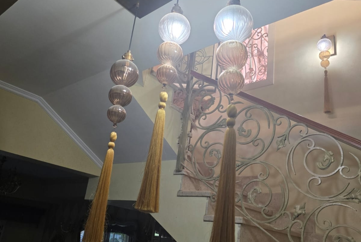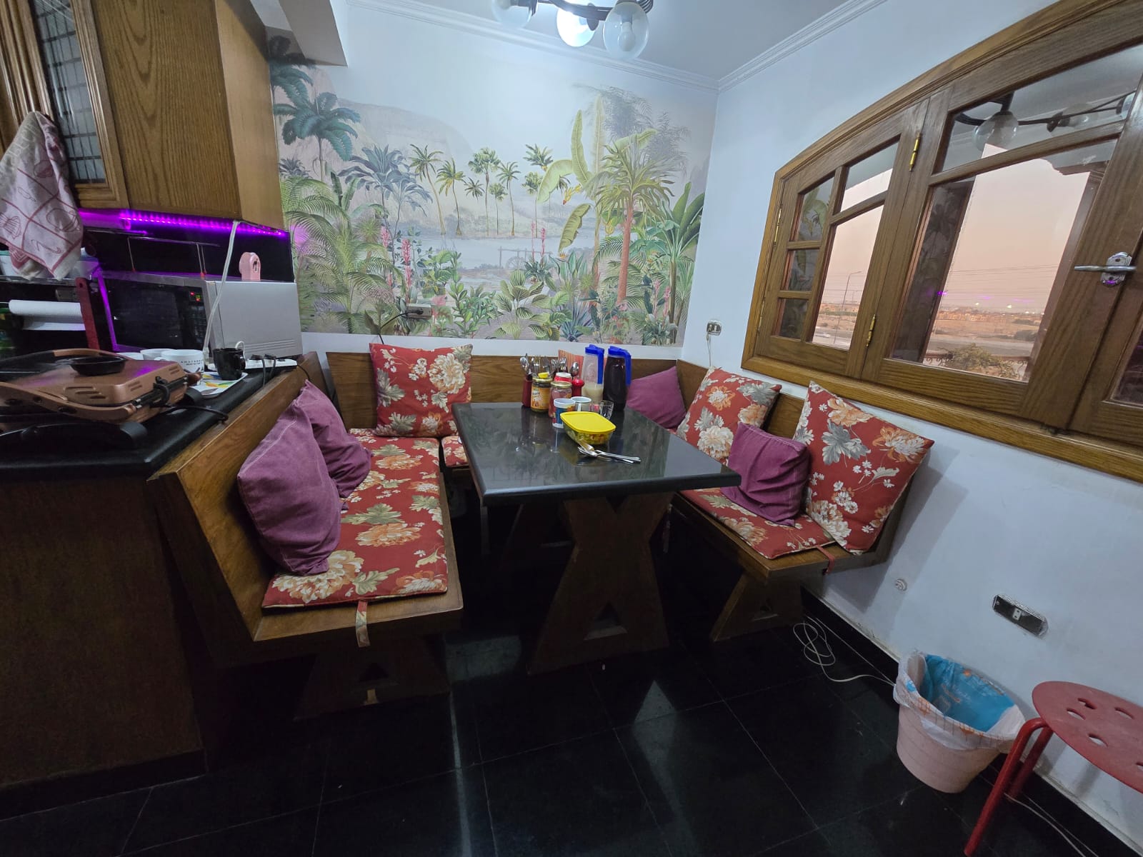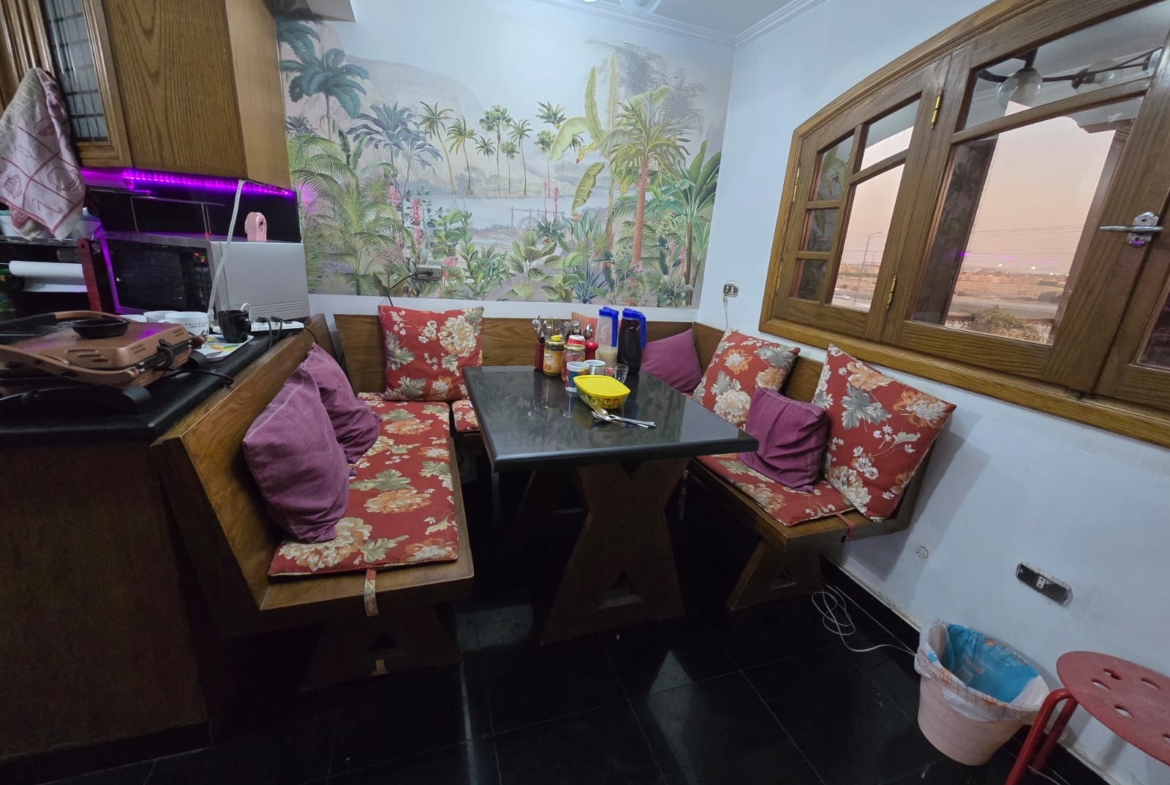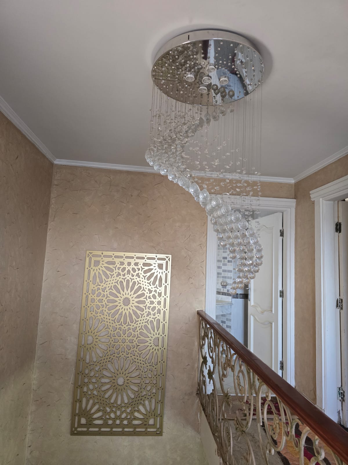 المطبخ رخام اسود ابلادور وشبابيك خشب ارو زجاج سلم البيت زجاج معشق .