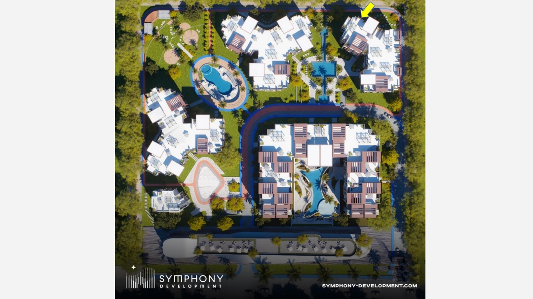 يوجد داخل الكمبوند فندق وستريب مول على الواجهة مساحات متنوعة تبدأ من غرفة واحدة وحتي ٣ غرف للشقة. الكمبوند سمارت ويوجد جراج وبسين ولاند سكيب وتراك للمشي