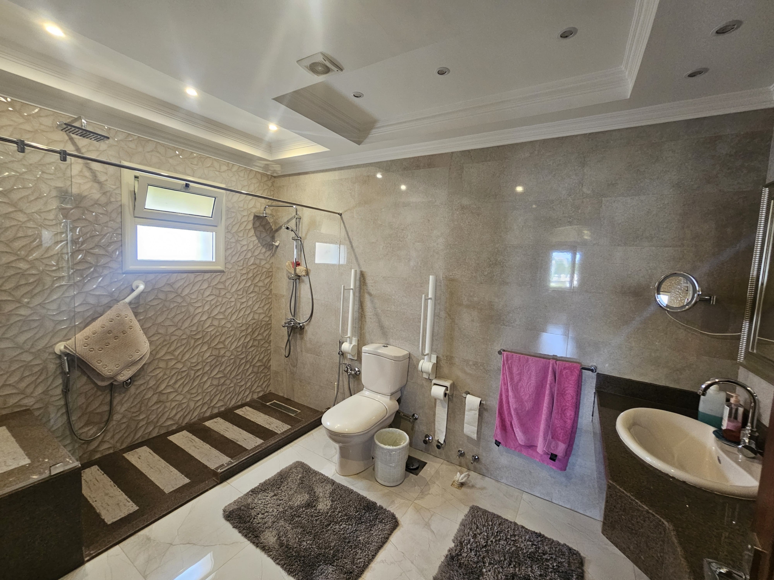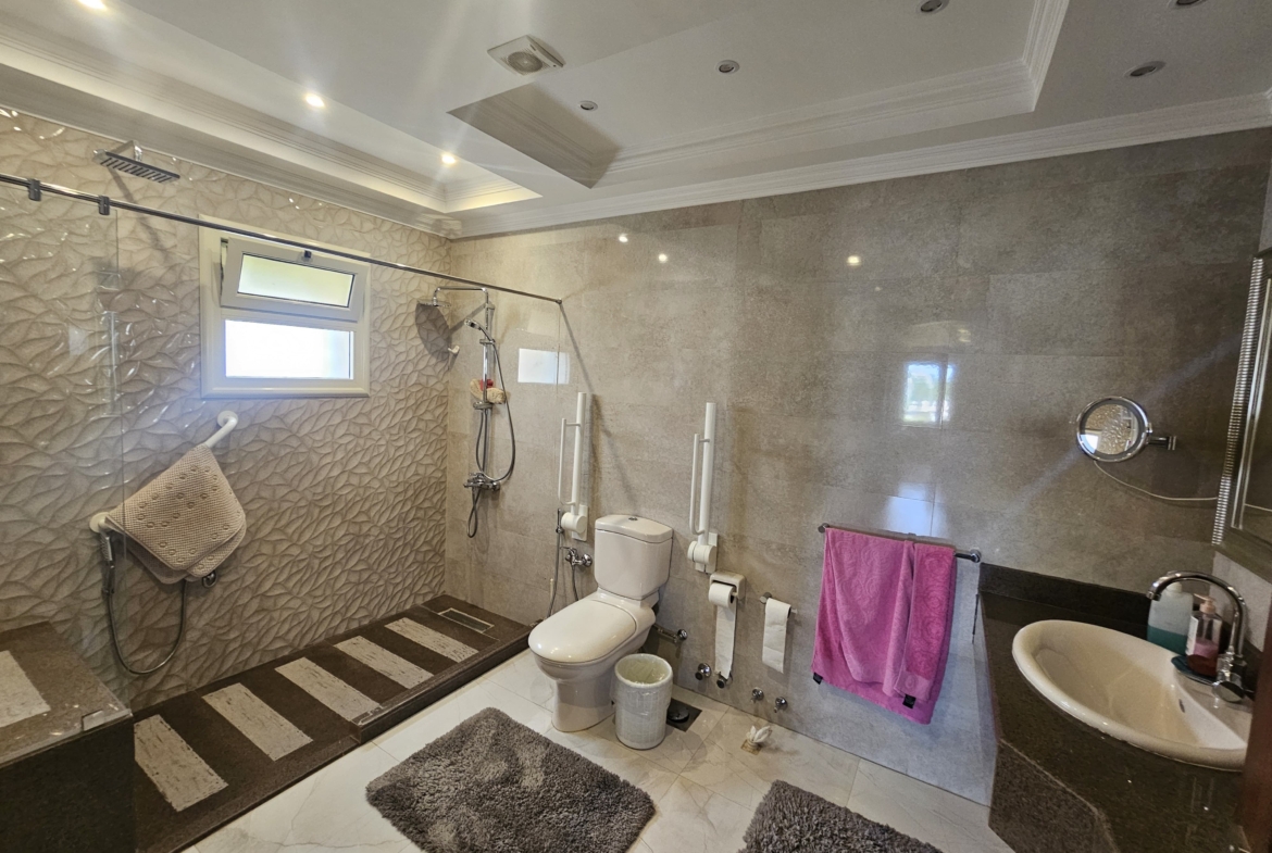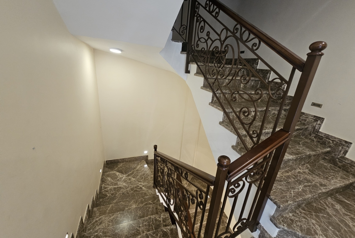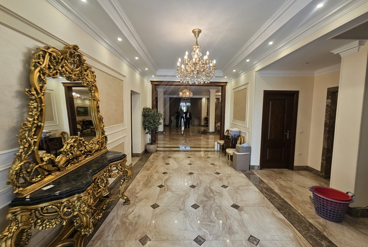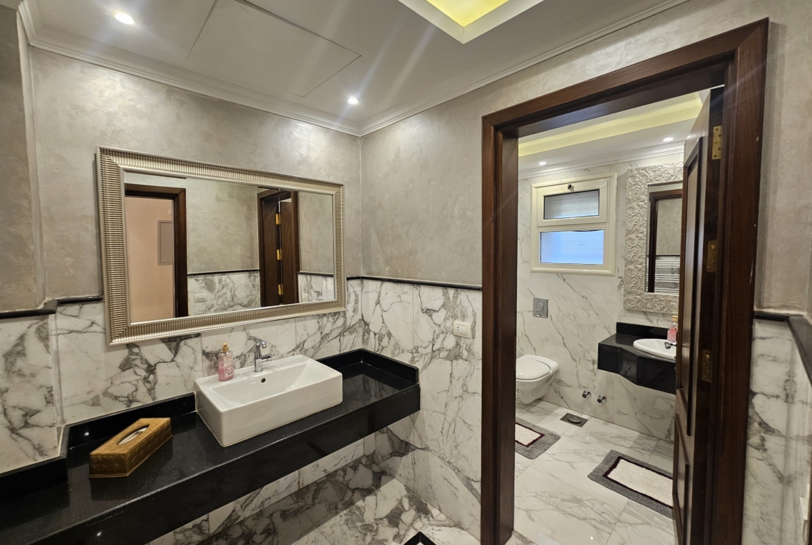 مساحة الفيلا 930م ارض و 550م مباني مقسمة على دورين وروف  تشطيب فاخر مقسمة الي 5 نوم و 2 مطبخ و5 حمام